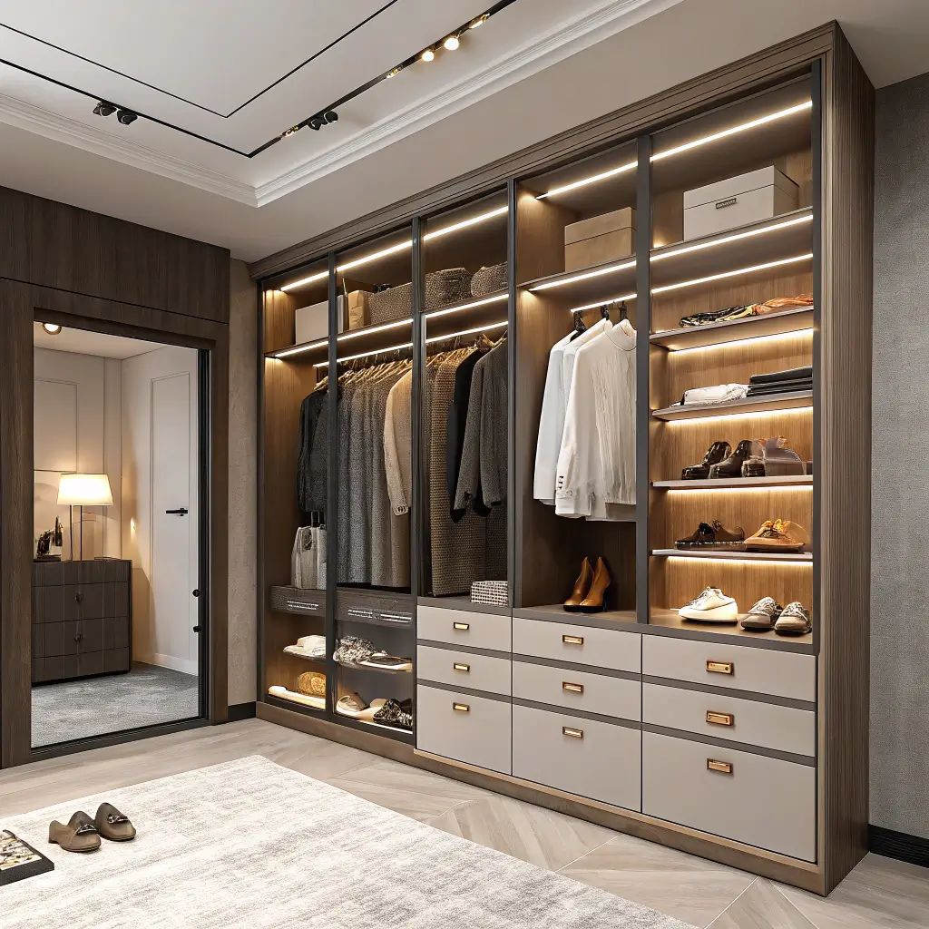 Our modular wardrobes combine smart storage solutions with elegant design, maximizing space while maintaining a clean, organized, and sophisticated look for modern interiors.